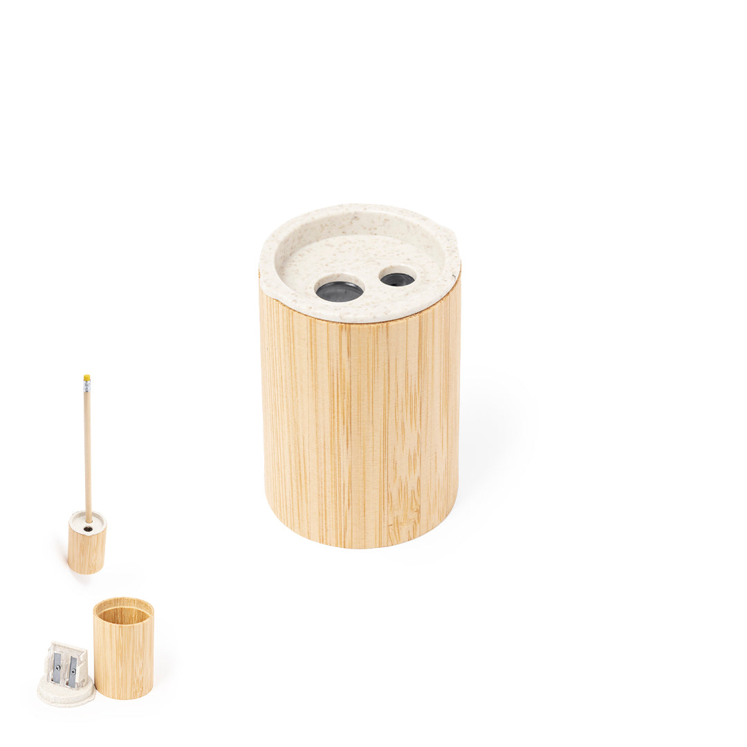 Descubra o afiador original, fabricado em palha de trigo e bambu, uma opção sustentável e prática para afiar seus lápis. Com dois diâmetros diferentes, este afiador é ideal para todos os tipos de lápis, garantindo um corte preciso e eficaz. O design inclui um recipiente em bambu que armazena as aparas, mantendo a sua área de trabalho limpa e organizada.