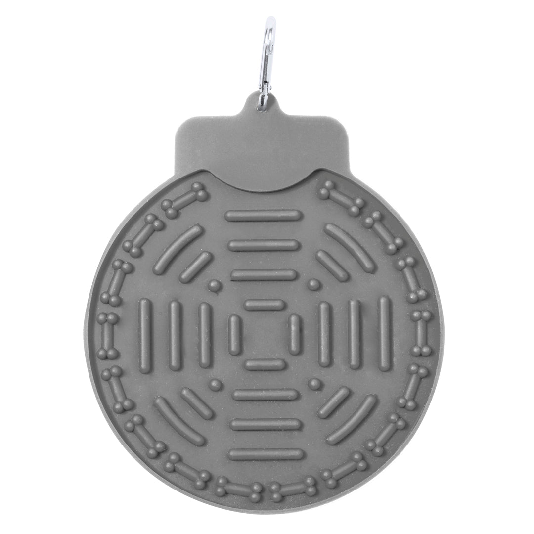 Com potentes ventosas, pode ser fixada facilmente em qualquer superfície plana, garantindo que a almofada permanece no lugar enquanto o seu animal se diverte. O design prático inclui um mosquetão de transporte incorporado, permitindo uma fácil fixação e transporte.