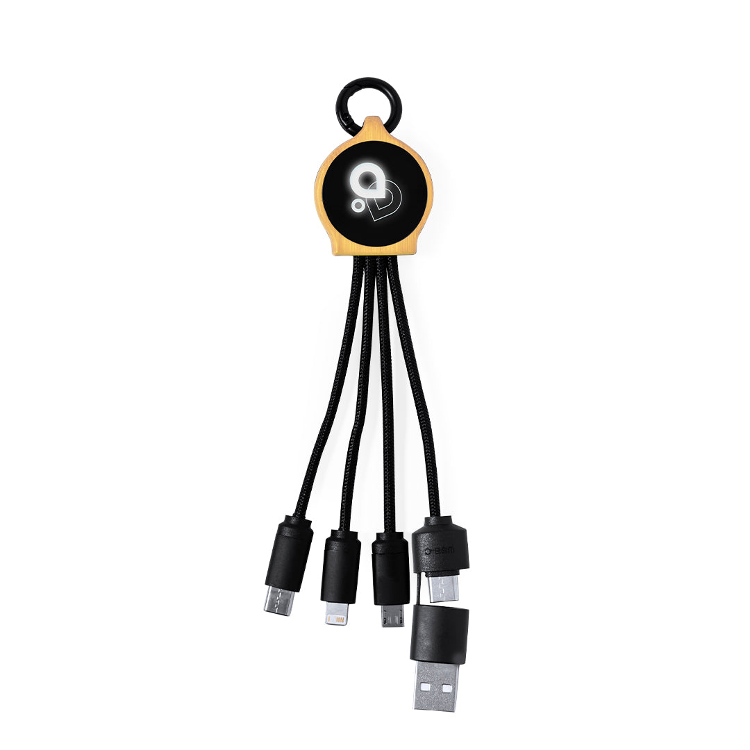 Cabo Carregador de Bambu com Luz LED Elegante