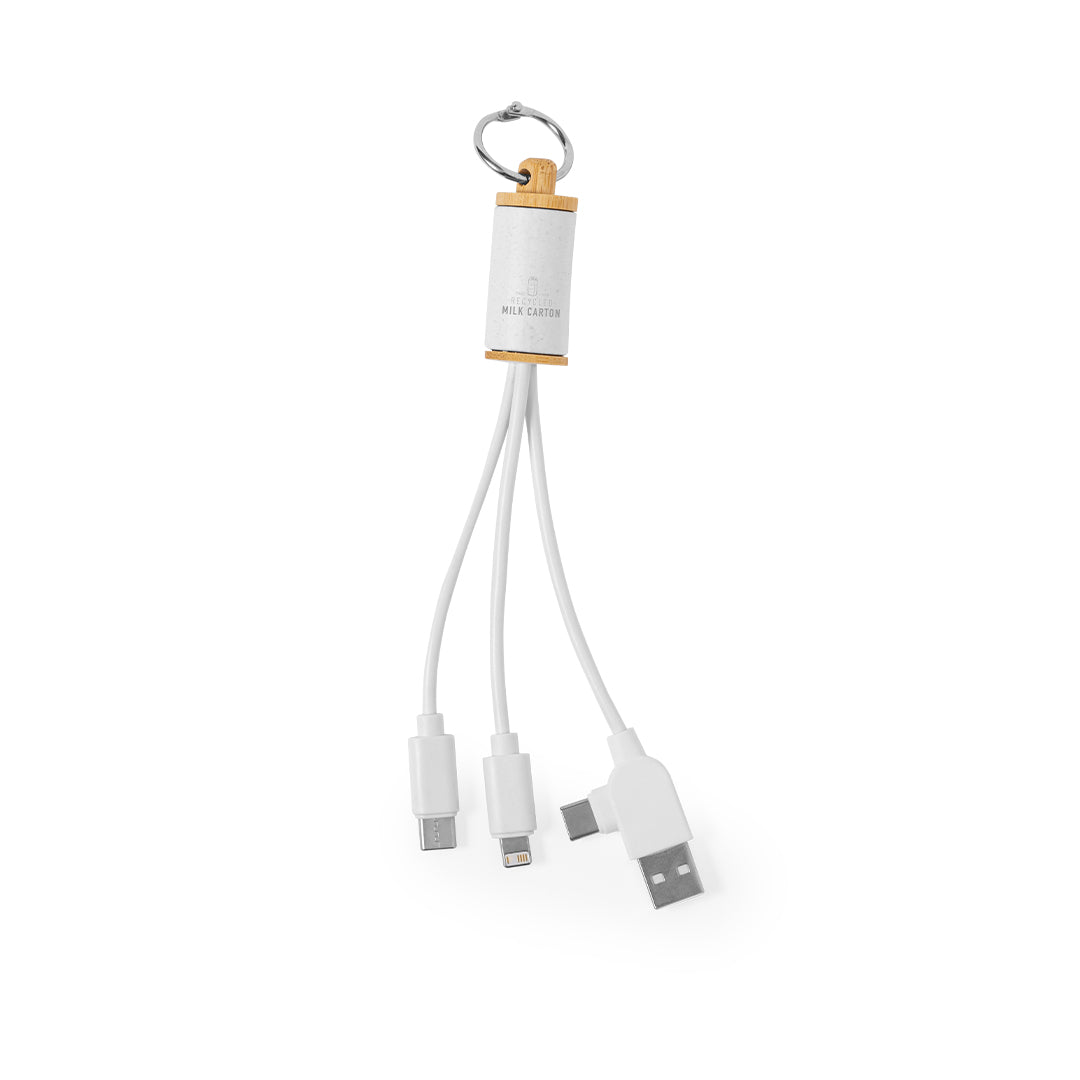 Descubra o nosso inovador cabo carregador, fabricado numa combinação sustentável de bambu e material reciclado a partir de pacotes de leite. Com conexão dual USB/Tipo C e opções adicionais de Micro USB, Tipo C e Lightning, este cabo é ideal para todos os seus dispositivos.