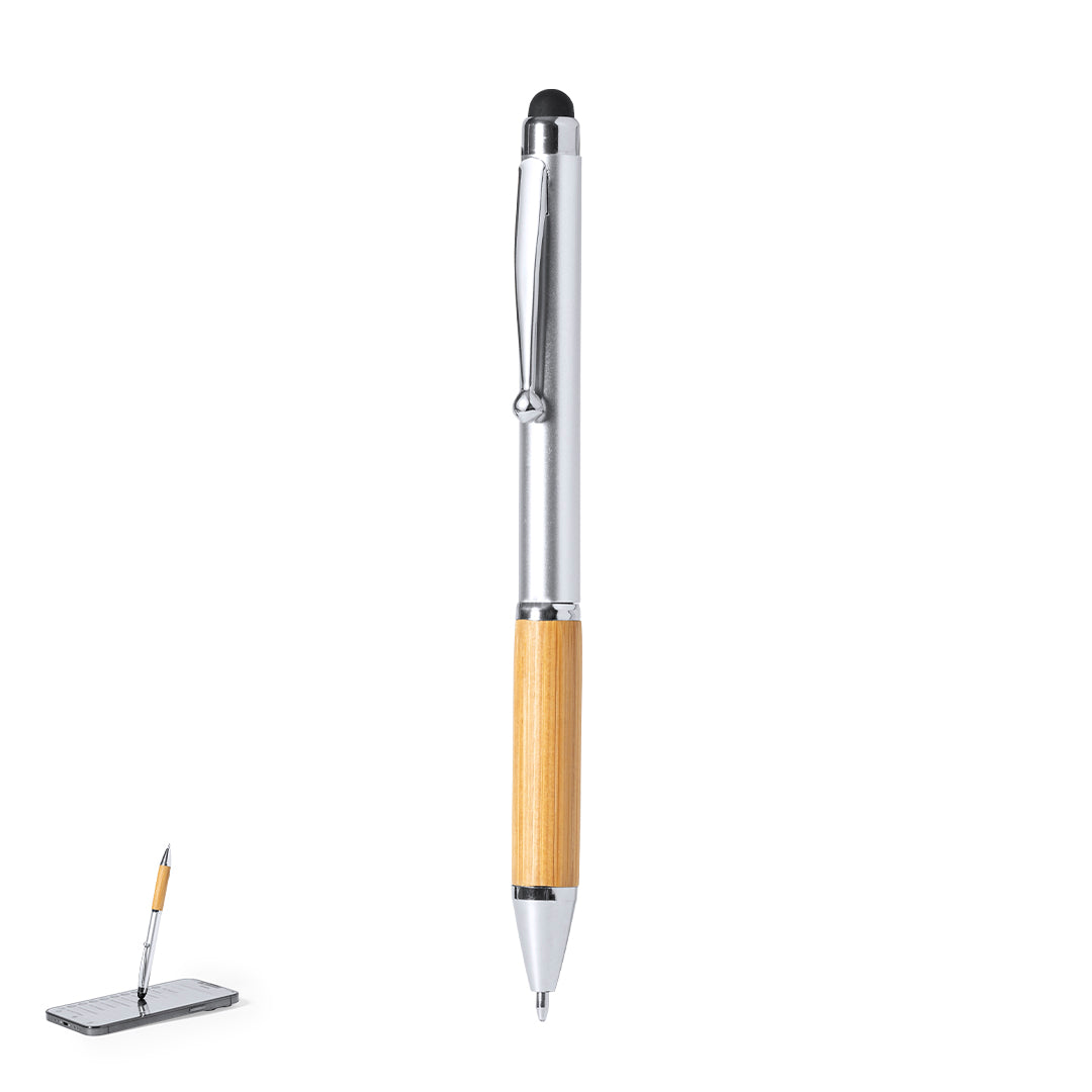 Descubra a esferográfica elegante com ponteiro de linha nature e mecanismo giratório. Com um corpo feito de resistente ABS com acabamento brilhante, esta caneta combina durabilidade e estilo. O cabo em bambu oferece um toque natural e único, enquanto o clip metálico garante praticidade no uso diário.